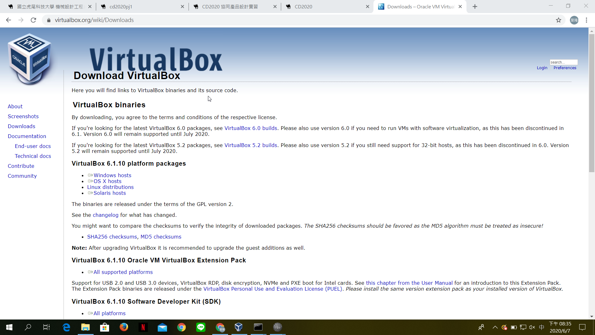 到 https://www.virtualbox.org/wiki/Downloads 載virtualbox