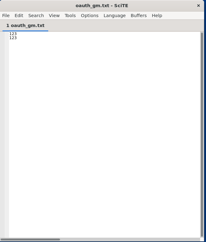 用SciTE 輸入 123 123 測試用的 名稱 oauth_gm.txt