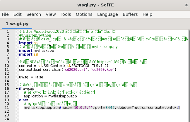 點開cd2020pj1裡的wsgi.py host=10.0.2.4 , port=8443
