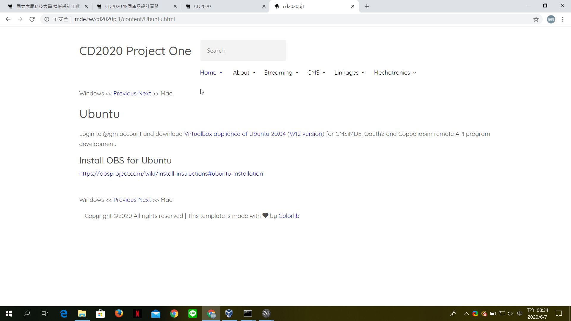 首先到 http://mde.tw/cd2020pj1/content/Ubuntu.html 使用 gm 帳號 下載Ubuntu20_cd2020pj1.ova Ubuntu2020_w12.ova 這兩個檔案
