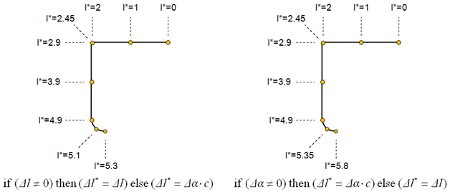 其中Δl和Δα分別是兩個連續的Bezier點之間的線性和角度變化。角度**變化是規則角度變化乘以角度係數c。 c稱為角度到線性的轉換係數,並且可以將角度值和線性值組合在一起。這意味著沿路徑的位置*或路徑長度*始終以線性單位(例如米)給出,而與上面選擇的位置計算方法無關。